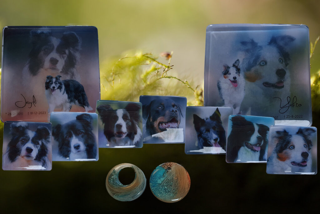 Denk hierbij bijvoorbeeld aan een mooi sieraad met een plukje haar van uw hond, of een unieke penning.